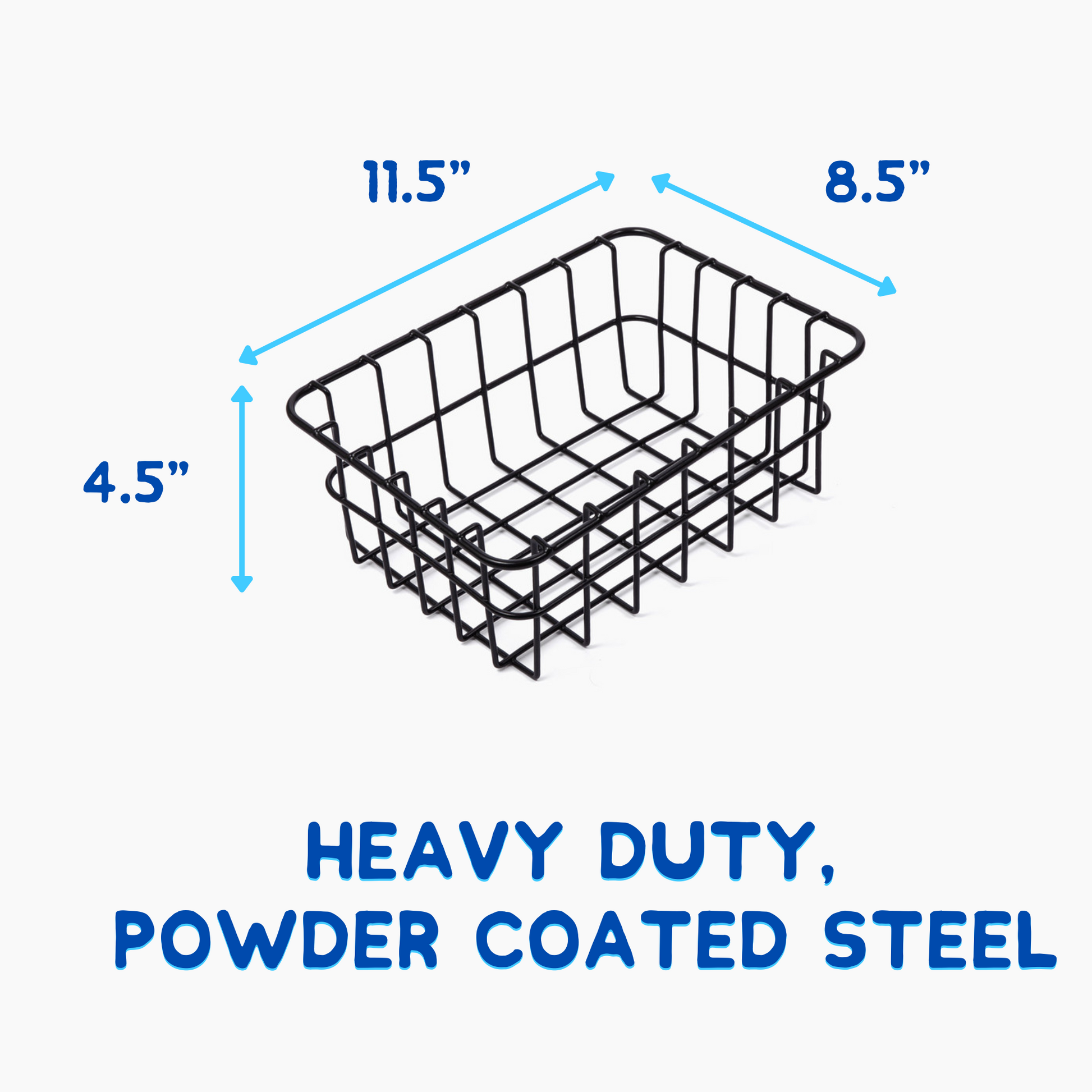 Plastic baskets collect condensation. Our wire baskets drain water away from your food. Use one basket to allow for tall bottles on one side, or grab two for side-by-side dry storage.