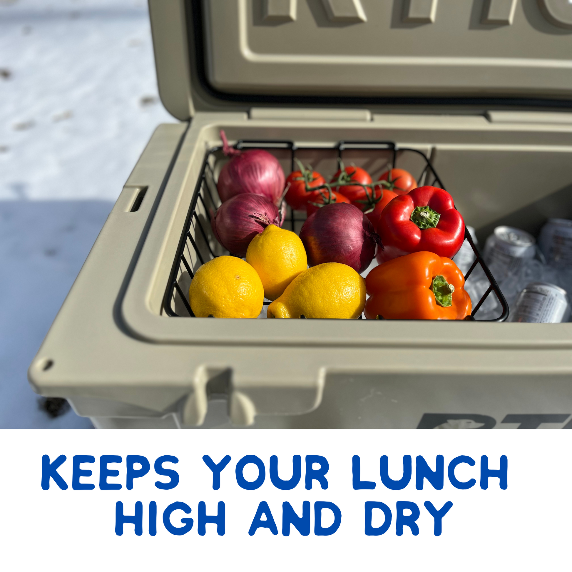 - WIRE BASKET MADE FOR THE RTIC 65. This dry goods tray won't collect condensation, so your lunch will stay high and dry.